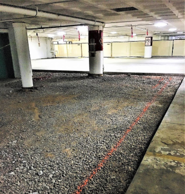 Applying PolyLEVEL expanding foam to raise any settled sections of the concrete. This is a high-density foam that can easily fill voids beneath the foundation, consolidating weak soils without having to remove anything.